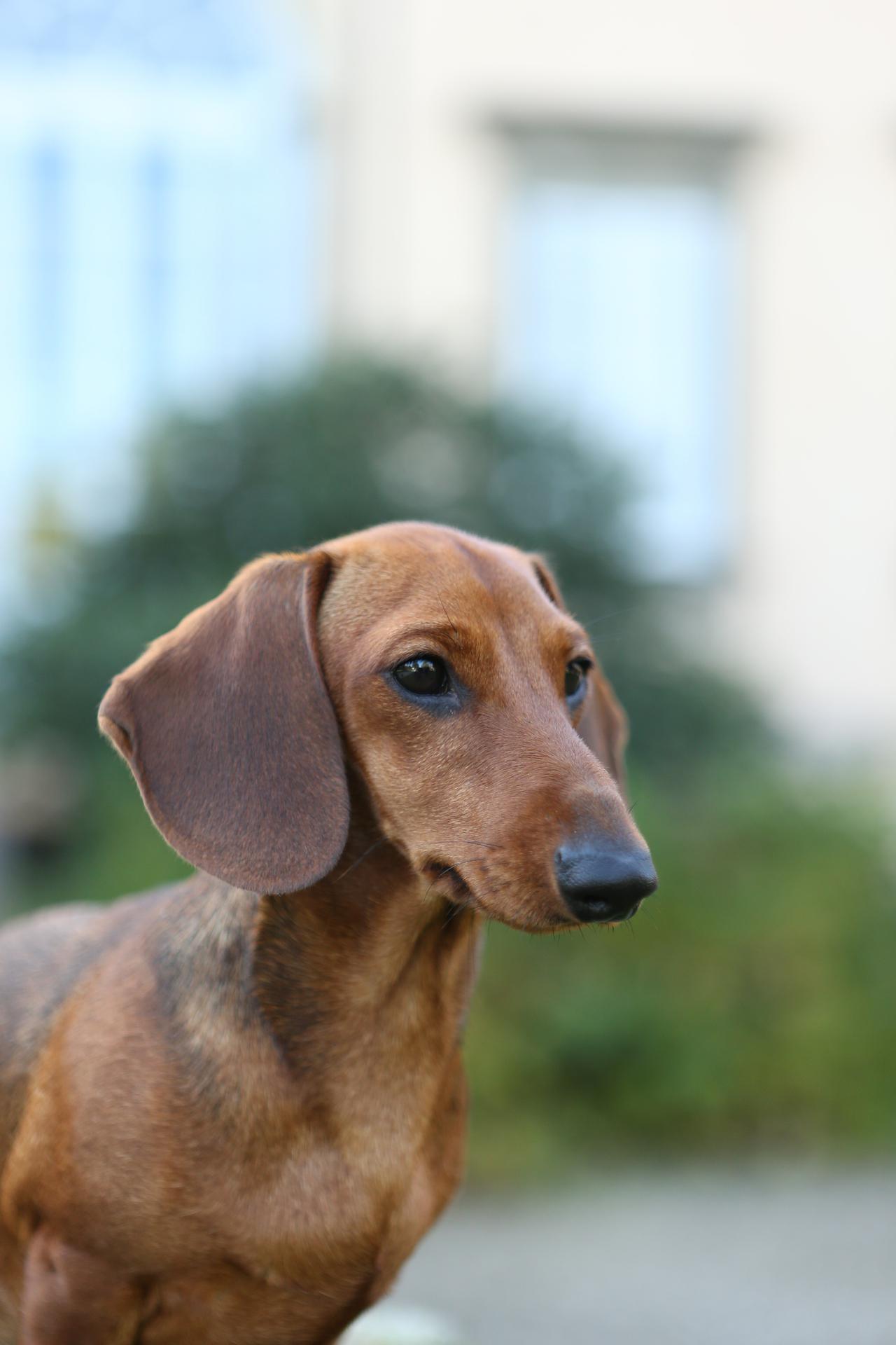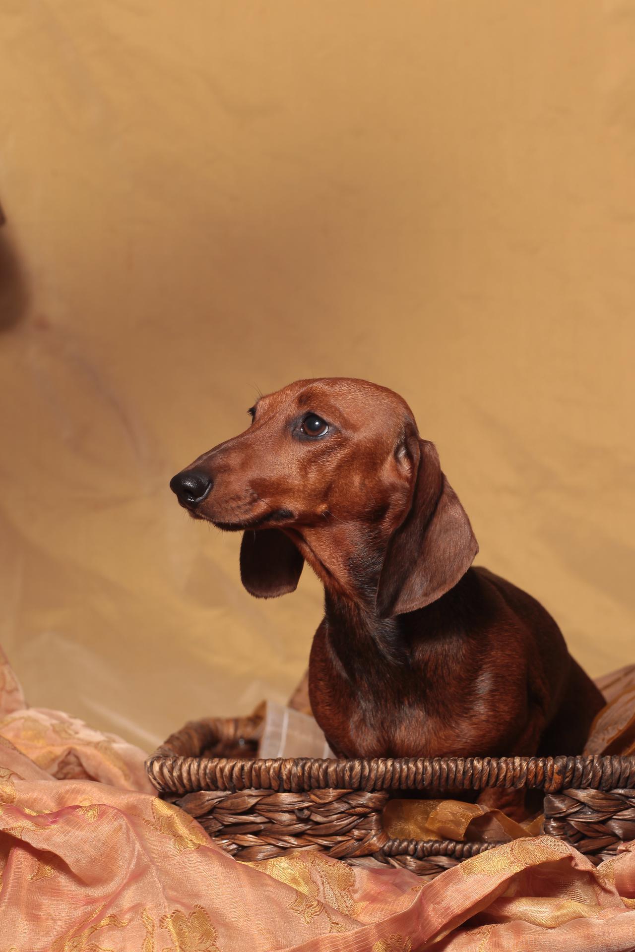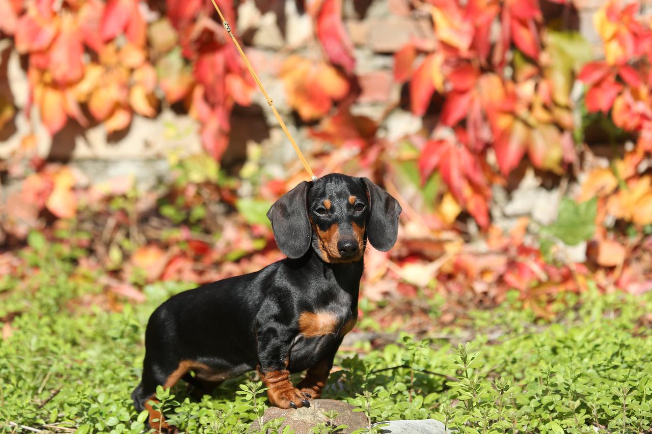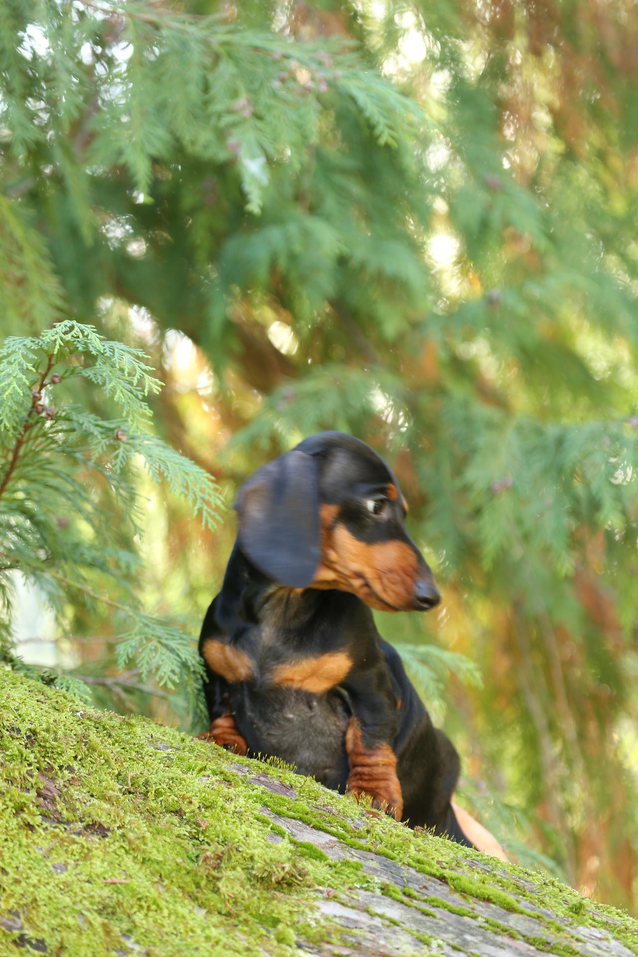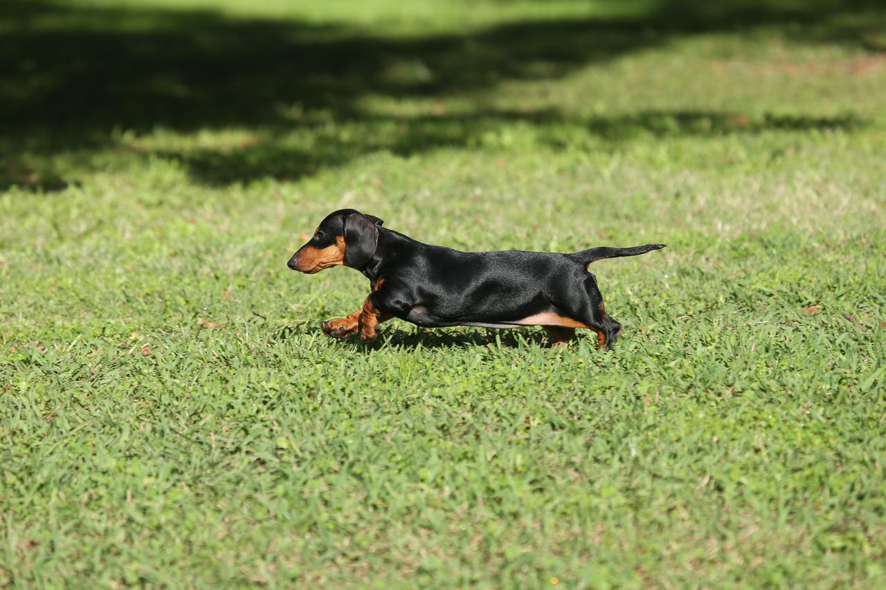 scatti professionali che celebrano la bellezza del Bassotto DIENGEL’S tra luce, verde e atmosfera.